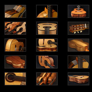 هل أنت مهتم في الغابة الغريبة التي يتم استخدامها من قبل صانع الجيتار لصنع جيتاراته؟ انقر هنا لرؤية عينات من الاخشاب المصنوعة للخلف و الجوانب والتي حاليا في ورشة العمل ، بما في ذلك الخشب البرازيلي و الكوكوبولو وخشب شرق الهند وخشب سيام وخشب مدغشقر وخشب الورد وخشب كوا هاواي وخشب بلاكوود الأفريقية والخشب المجعد البستون الجوز ، وخشب الكيوواري القديمة.