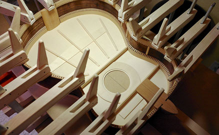 مغر الخصائص الصوتية لهذه الآلة يأتي في المقام الأول من خشب الورد جميل الظهر و الجانبين .موديل الكاكاو يصنع بواسطة خشب السيام البرازيلي كوكوبولو (كما هو موضح هنا) ، او اخشاب شرق الهند او خشب المدغشقر او خشب الورد و ... و عادتا ما تصنع مع خشب الوجه الأروبي عالي الجودة او خشب الإنجيلمان كبديل . ايضا يمكن صناعة الوجه من خشب السيدار الشوكولاتي لإعطاءه الشكل الجميل و الألوان الجميل و الأهم من ذلك صوت يانع اكثر و قوي جدا.