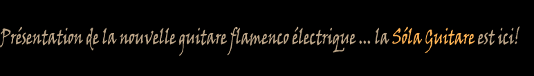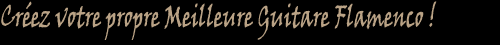 Cliquez ici pour cr�er votre � meilleure guitare flamenca �. Une page Web interactive a �t� con�ue afin de vous aider � consid�rer toutes les options mises � votre disposition lors de la commande d'une guitare flamenca personnalis�e. Cette page interactive vous permettra essentiellement de cr�er votre propre guitare en s�lectionnant les options reprises dans plus de 20 cat�gories diff�rentes. Une fois que vous avez d�termin� vos besoins, il vous sera possible de conna�tre le prix exact de l'instrument et de recevoir plus de d�tails concernant la commande d'une guitare personnalis�e, fabriqu�e selon vos propres exigences.