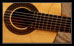 11 Une photo unique prise en gros plan des cordes � forte tension en nylon clair et des cordes enroul�es en argent surplombant la rosace artisanale, � griffe du luthier �.