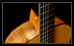 4 La t�te en forme de corne de taureau espagnol, formant la "signature" du luthier, est mise en relief par un placage en palissandre br�silien et un jeu de m�caniques Fustero en plaqu� or.